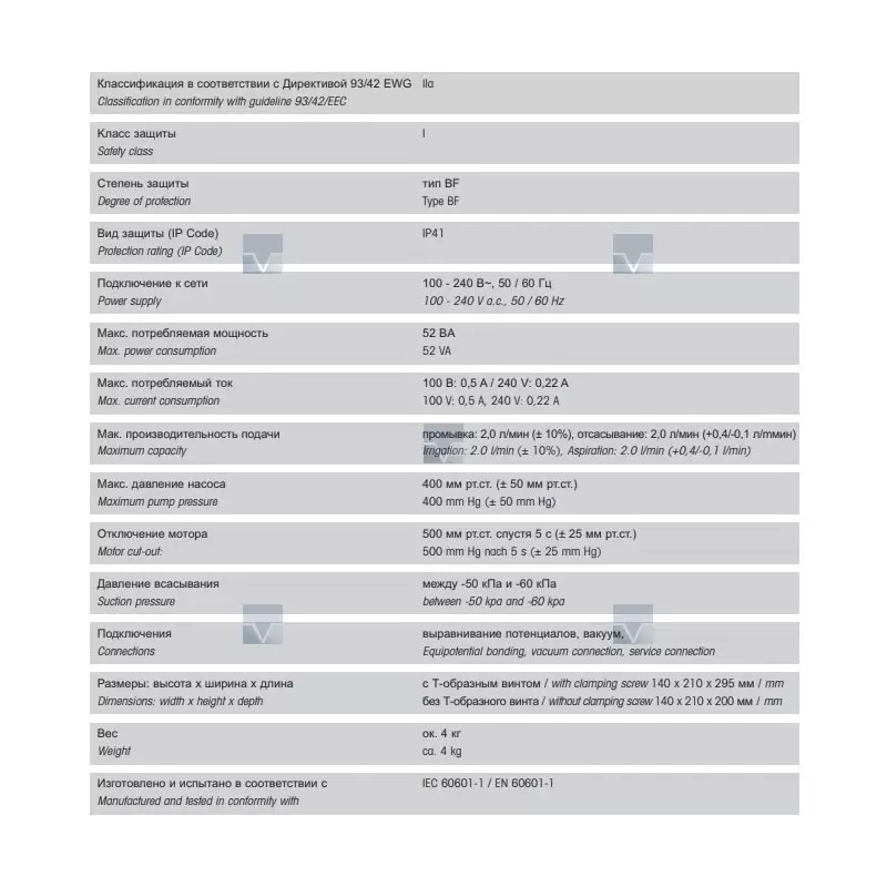 - Оптимальная мощность отсасывания и промывания