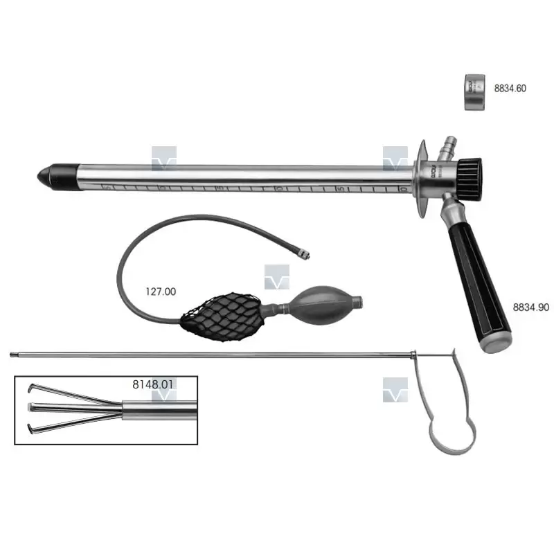 | Ректоскоп включает: трубку, обтуратор 8834.05, рукоятку 8834.90, двойной нагнетатель с элементом Luer 127.00, колпачок с окном для наблюдения 8834.60, тупферные щипцы 8148.01 | 18 | 300 | 8834.22 |