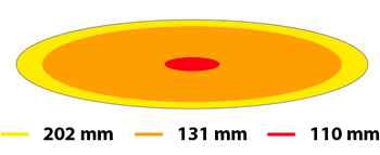 Желтая зона: Зона 5 МПа (акустическое давление не менее 5 МПа) — рабочая зона высокой энергии.