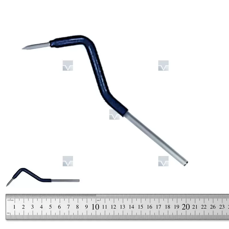 Электрод монополярный игольчатый изогнутый, толстая игла малый для радиохирургических аппаратов Сургитрон и RFS 4000K длина рабочей части 10мм, Рабочая часть 1.0 мм, Длина 50мм