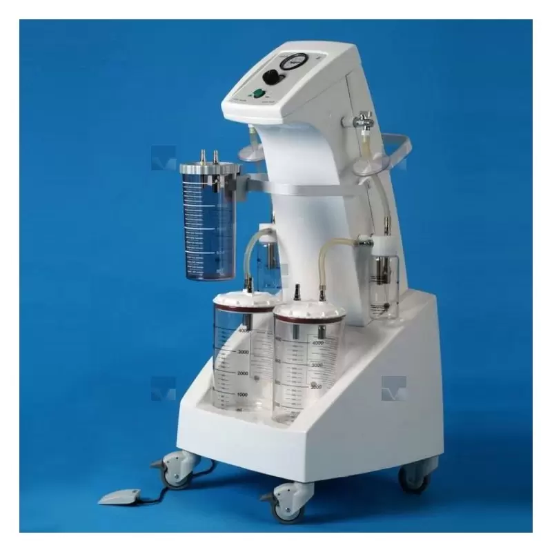 Высокоэффективный отсасыватель MevacsM90 пригоден прежде всего для использования во всех видах хирургии и при липосакции. Безмасляный вакуумный насос гарантирует длительную не требующую ухода эксплуатацию. Простое обслуживание. Встроенный вакуумметр и регулятор вакуума. Два отсасывающих контура. Возможность переключения отсасывающих контуров. Отсасывающий объем 8 л без замены ёмкости. Автоклавные поликарбонатовые сосуды для секретов объемом 2 л и 4 л. Четырехкратная система защиты от переполнения: запасная емкость с предохранительным клапаном + предохранительный клапан в крышке емкости + гидрофобный микробиологический фильтр. Высокий уровень вакуума. Управление педалью. Большой выбор аксессуаров.